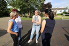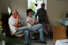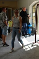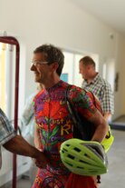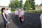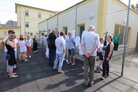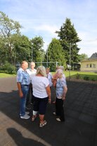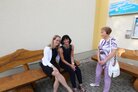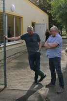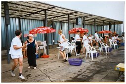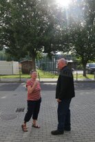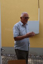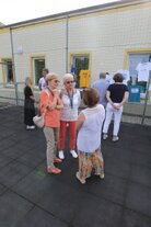 an der Wand zu sehen waren. Das sonnig warme Wetter lud zum Plaudern im Freien