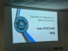 18.30 Uhr setzten wir den Abend mit der Siegerehrung der Bestenermittlung von 2023 fort. Danach erzählte uns Heinz etwas über die wichtigsten Wettkämpfe seit etwa 1990. 19.15 Uhr eröffneten wir das leckere Abendbuffet. 20.30 Uhr lauschten alle schließlich noch dem Vortrag über unsere Höhepunkte des Sportjahres 2023.