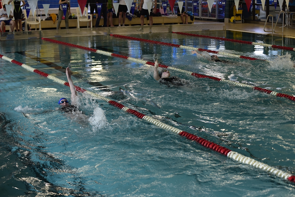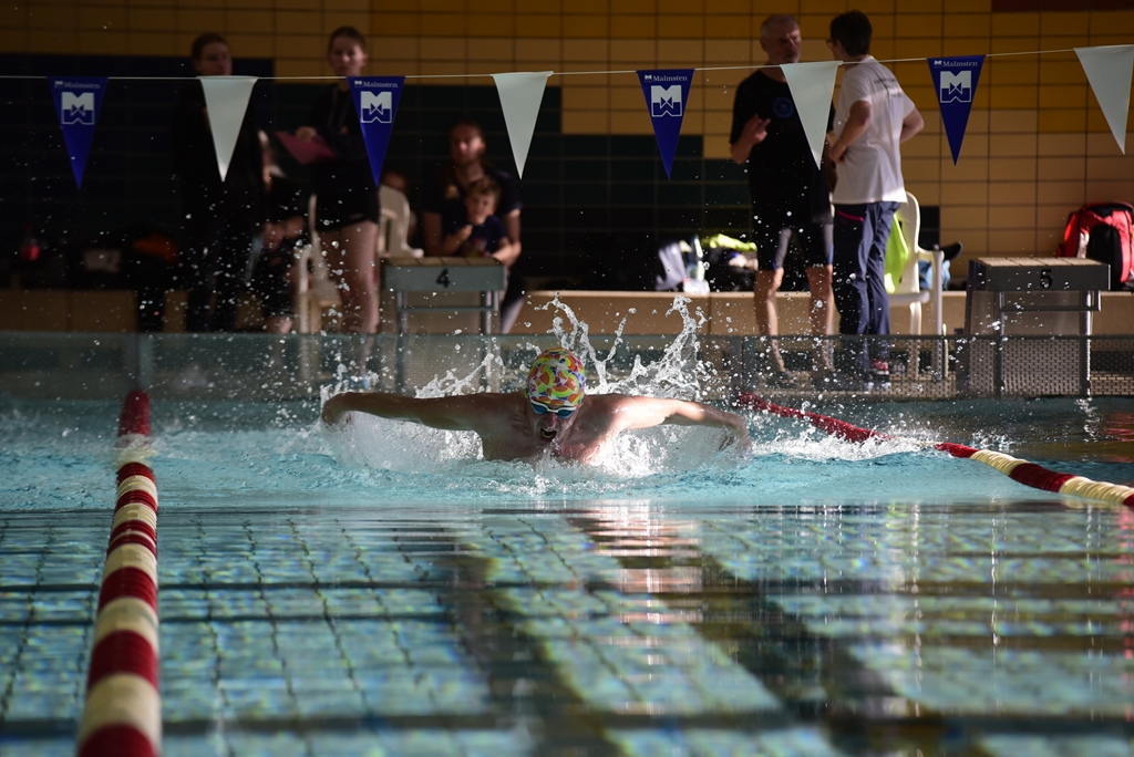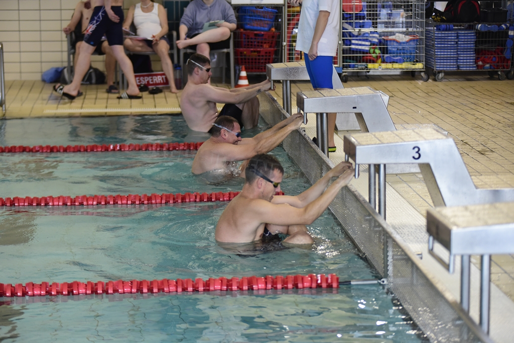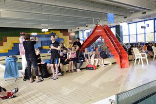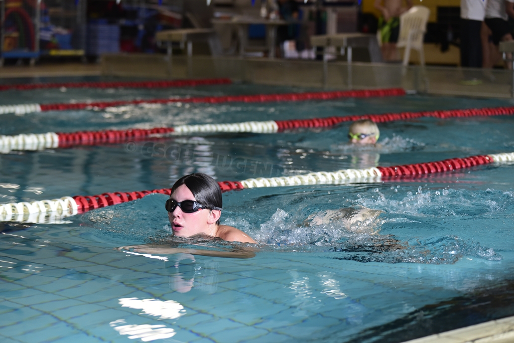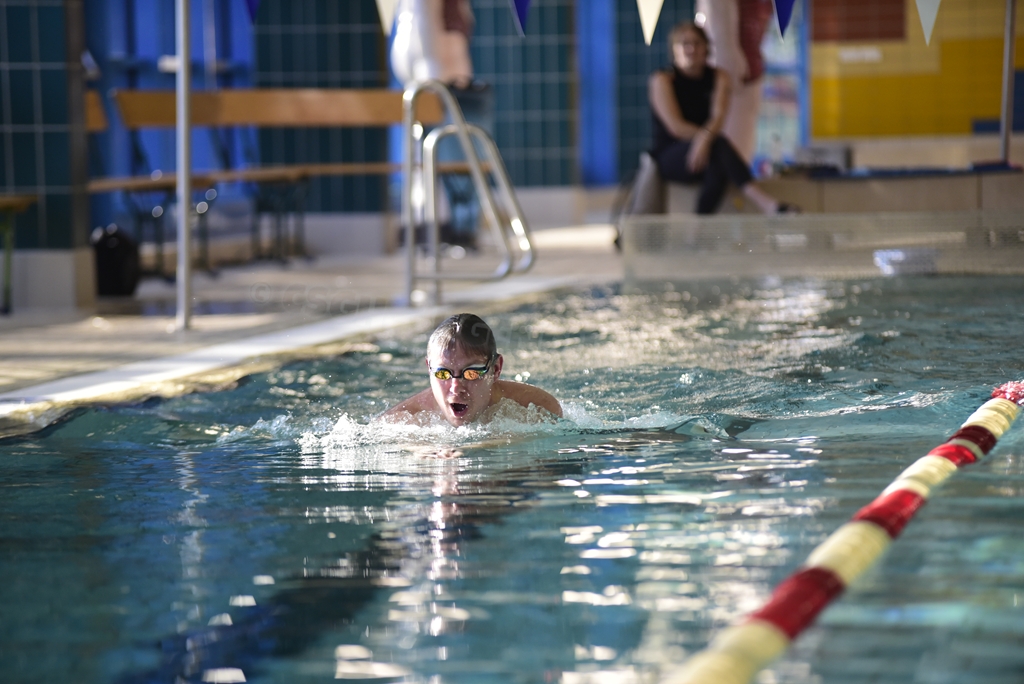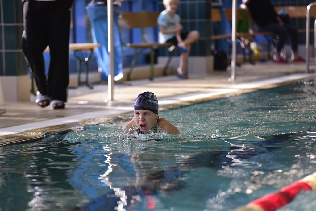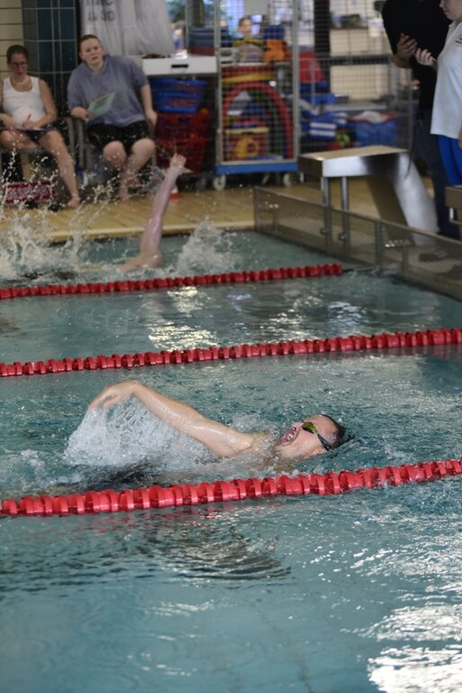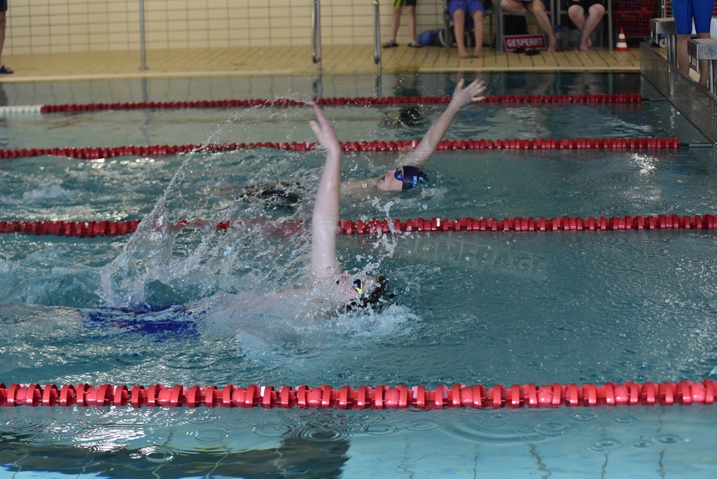 11.00 Uhr konnte der Wettkampf dann endlich beginnen. Die Anfänger starteten über die 25m (mit und ohne Hilfsmittel), die Jüngeren und die Masters über die 50m Strecken und alle anderen „dazwischen“ schwammen die 100m Strecken. Es war eine schöne Mischung aus Wettkampfneulingen und erfahrenen Schwimmern. Manche hatten einfach viel Spaß und andere kämpften ehrgeizig um jeden Zehntel. In den kurzen Pausen zwischen den Läufen gab es wie immer ein gut gefülltes Buffet mit Kuchen, Salaten, Wienern und Brötchen. Am mittleren Nachmittag war der erste Teil geschafft und alle konnten nach Hause gehen.