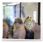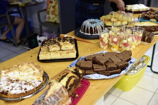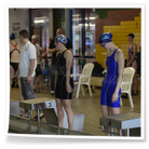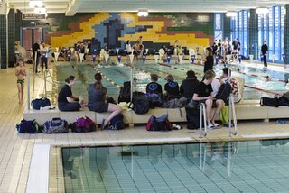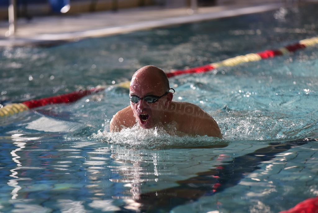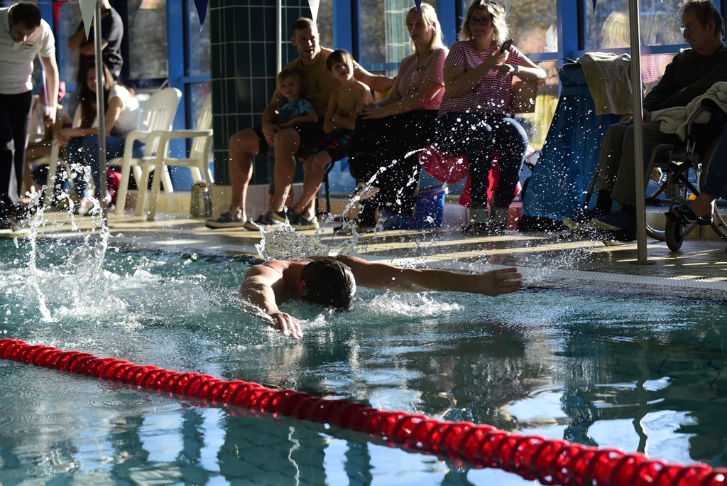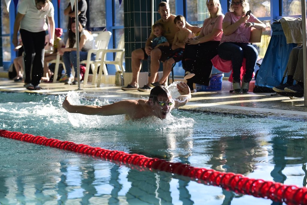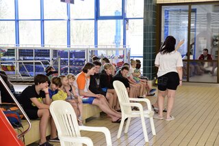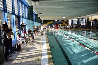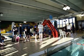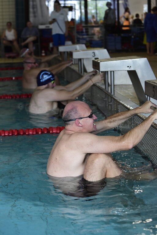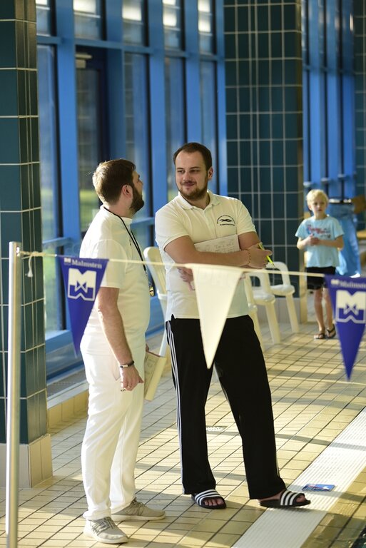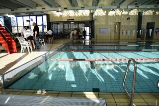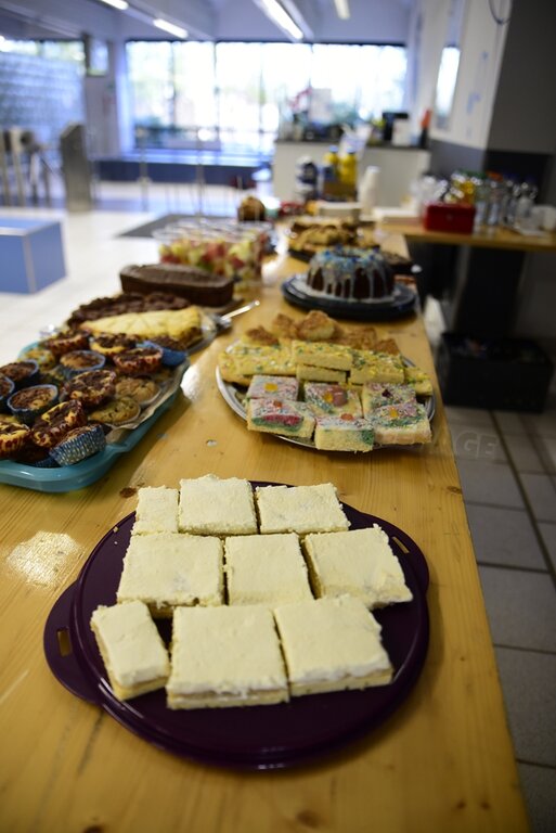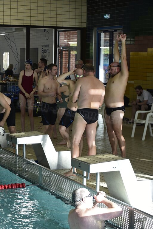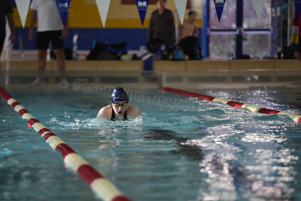 11.00 Uhr konnte der Wettkampf dann endlich beginnen. Die Anfänger starteten über die 25m (mit und ohne Hilfsmittel), die Jüngeren und die Masters über die 50m Strecken und alle anderen „dazwischen“ schwammen die 100m Strecken. Es war eine schöne Mischung aus Wettkampfneulingen und erfahrenen Schwimmern. Manche hatten einfach viel Spaß und andere kämpften ehrgeizig um jeden Zehntel. In den kurzen Pausen zwischen den Läufen gab es wie immer ein gut gefülltes Buffet mit Kuchen, Salaten, Wienern und Brötchen. Am mittleren Nachmittag war der erste Teil geschafft und alle konnten nach Hause gehen.