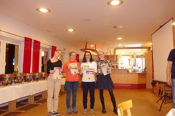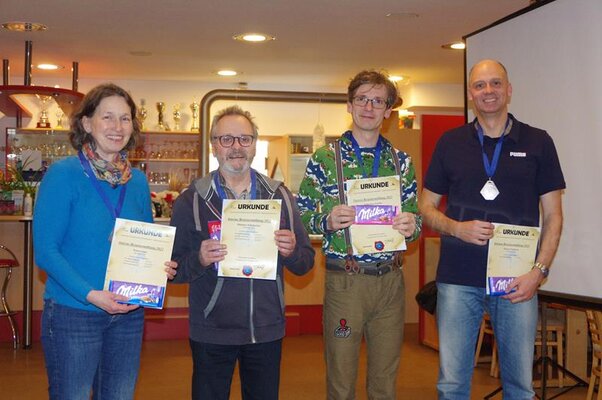 18.00 Uhr begann schließlich der festliche Teil des Abends. Mit etwa 50 Gästen war unsere Feier sehr gut besucht. Zuerst erhielten in alt bewährter Form alle Sieger und Platzierten der im November letzten Jahres ausgetragenen vereinsinternen Bestenermittlung Medaillen, Urkunden und Schokolade. (Die eigentlichen Preise sind noch immer irgendwo zwischen Bangladesch, Hamburg und Chemnitz in Arbeit.) 18.30 Uhr gab es Abendessen. Anschließend ließen wir mit Fotos und kleinen Geschichten unser gemeinsames Sportjahr 2022 Revue passieren. Während sich die Ersten danach bereits wieder auf den Heimweg machten, blieb ein Teil noch bis nach 23 Uhr zum gemütlichen Quatschen.