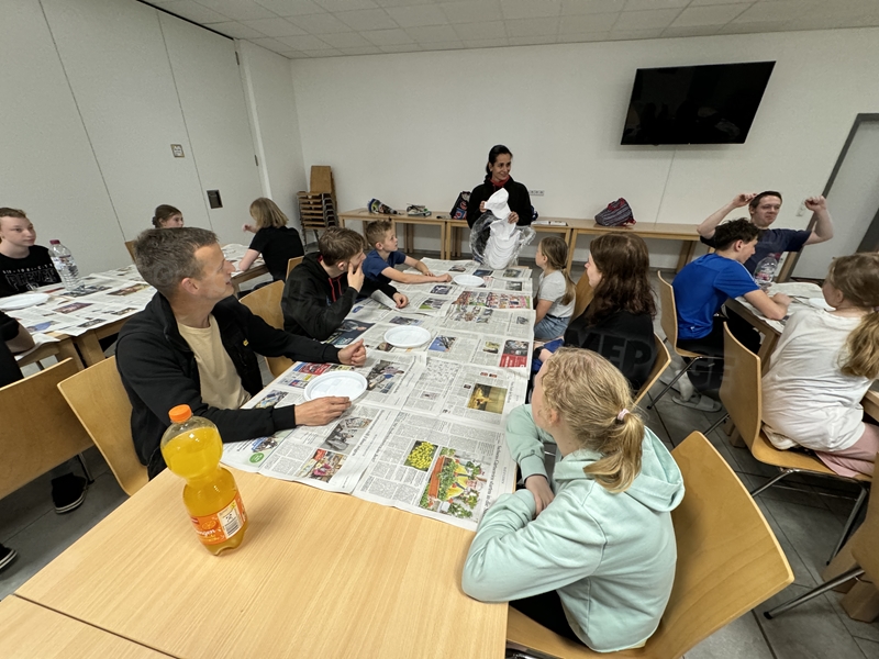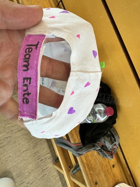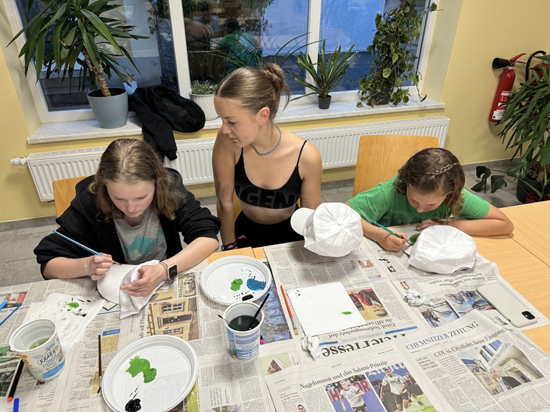 Zum 33. Trainingslager in Flöha trafen wir uns mit 34 Schwimmern vom 31.05.-02.06.24. Die Planung für dieses SOMMER-Trainingslager sah wie immer viele sportliche Aktivitäten im Freien und unseren traditionellen Freibadbesuch vor. Doch am Mittwoch vergangene Woche mussten wir noch einmal alles umplanen, denn der Wetterbericht sagte für uns dieses Wochenende Unmengen von Regen und Schlimmeres voraus. (Hier die Bilder aus dem Förderverein von 2013). Am Freitag war zwischen 16.30 und 17.30 Uhr Anreise und Zimmer beziehen. Die erste Herausforderung bestand hierbei im Beziehen der Betten. Es war für uns sehr schnell klar, wer das noch nie zu Hause selbst gemacht hatte und wir amüsierten uns köstlich über die Versuche Einiger, den Bettbezug über die Bettdecke zu ziehen. Nach dem Abendessen 18.30 Uhr stand uns keine Turnhalle zur Verfügung (da parallel zu uns mehrere Abschlussfeiern stattfanden und wir im Vorfeld nichts gemietet hatten, weil wir ja mit schönem Wetter gerechnet hatten). So nutzten wir das kleine Volleyballfeld im Auenstadion für ein paar Ballspiele. Als aber der Regen zu stark wurde, zogen wir uns in den Aufenthaltsraum zurück und teilten die Gruppe in die 4 Teams ein, die am Samstag jeweils unsere Hockeystaffeln und das Turnier zusammenspielen. Jeder bekam ein weißes Basecap und Stoffmalfarben. Die Teams sollten sich einen Teamnamen überlegen und passend dazu die Basecaps gestalten. Während manche mit dieser Aufgabe zunächst etwas überfordert waren, begannen andere sehr eifrig und mit viel Liebe die Caps zu bemalen. Gegen 21 Uhr hatten es alle geschafft und wir gingen in unsere Zimmer und irgendwann auch ins Bett.