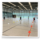 mit dem Hockeyschläger und Köpfchen gefragt waren. Am Ende der Einheit spielten