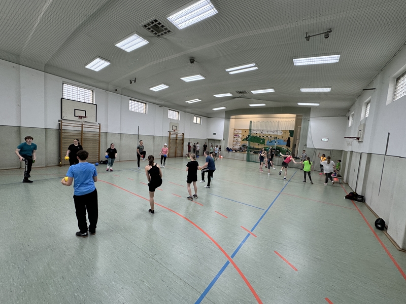 Vormittag verbrachten wir in der großen Turnhalle des Samuel von Puffendorf –