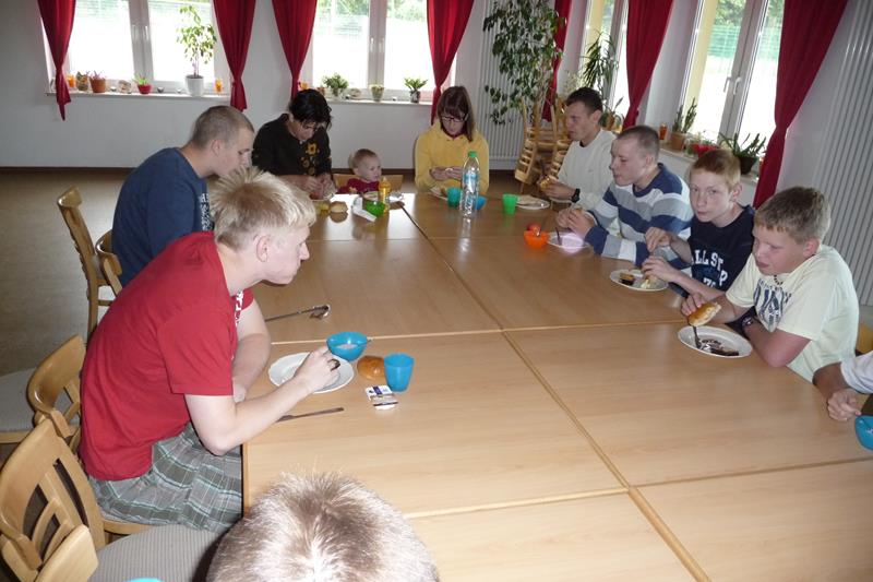 Zum Abendbrot - es gab Gegrilltes und jede Menge Salate - sahen fast alle schon mächtig geschafft aus. Doch nach einer kleinen Pause hatten Einige noch immer nicht genug und so wurde eben wieder dem Ball hinterher gerannt … :-> Gegen 22.00 Uhr waren alle im Zimmer angekommen und irgendwann schlief auch der Letzte ein. (… und träumte im Zimmer 14 vielleicht noch vom lustigen Spieleabend "Pflicht oder Wahrheit" bzw. vom besten Propeller)
